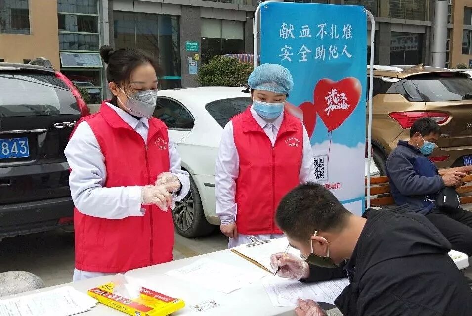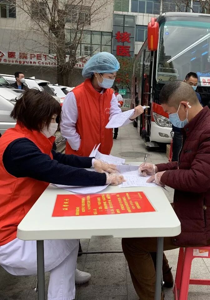 医院的志愿者不但带头献血,在献完血后还义务在现场做起了志愿服务,登记、排号,提供健康宣教,宣传防疫知识。在志愿者的带领和感召下,越来越多的群众加入到无偿献血的队伍中。