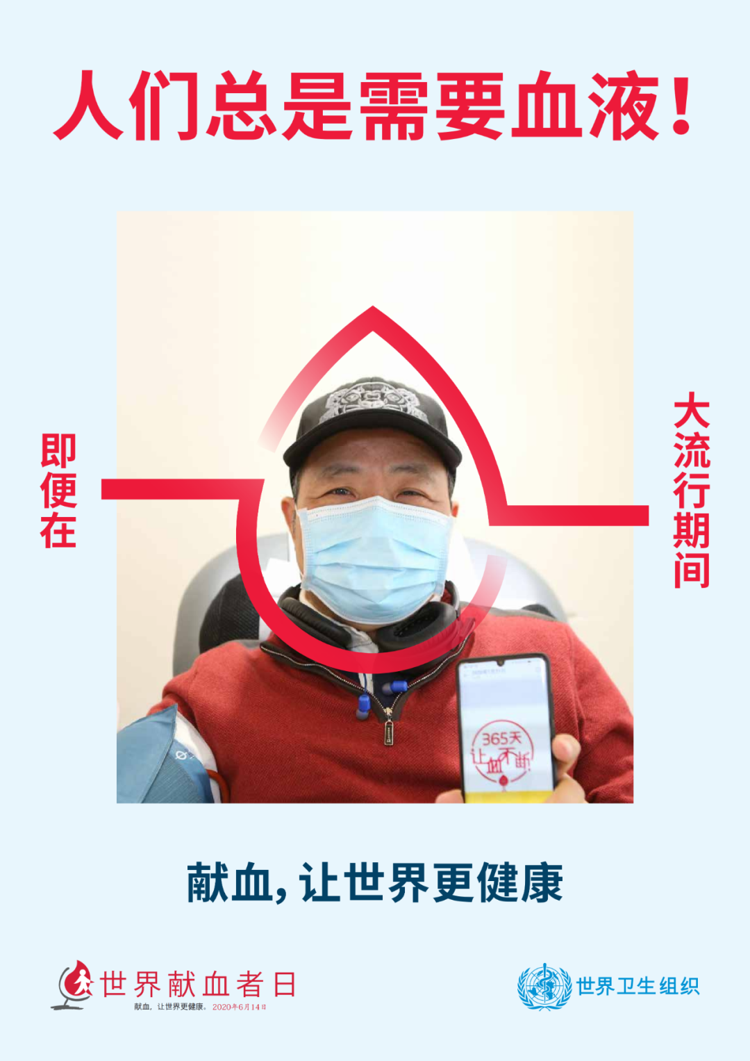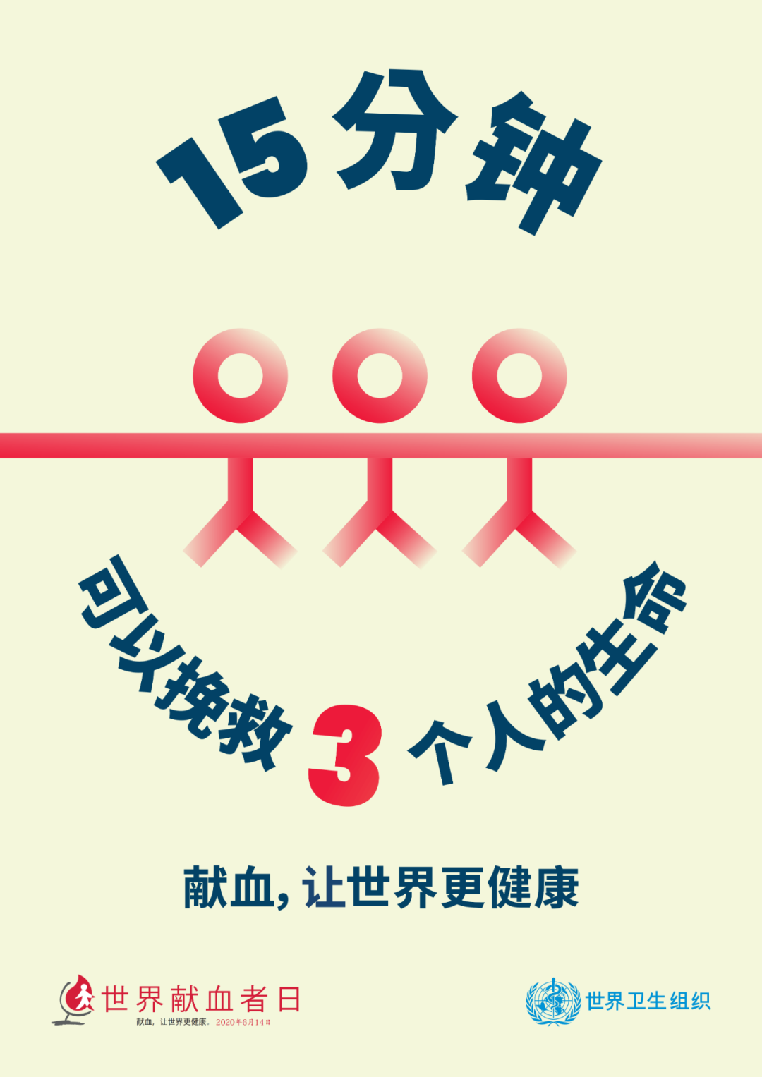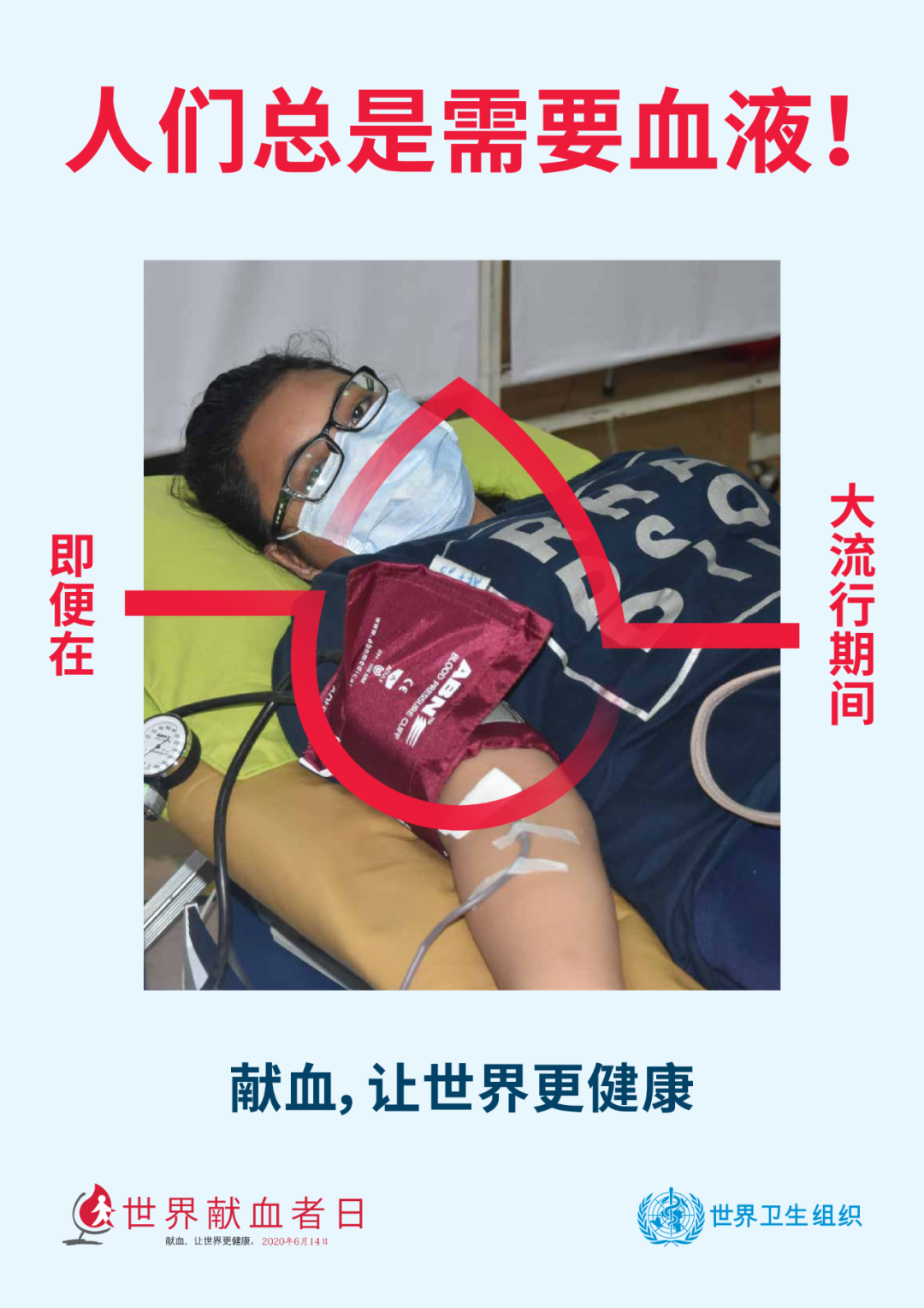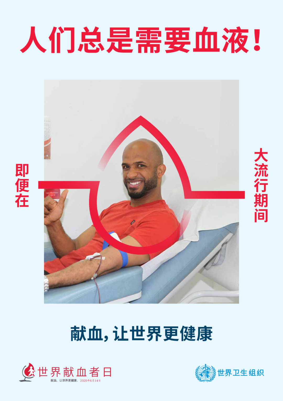 6月4日,世界卫生组织(WHO)发布了2020年世界献血者日(WBDD)海报和媒体宣传材料。材料以WHO的六种官方语言(中文、英语、法语、俄语、西班牙语和阿拉伯语)发布。