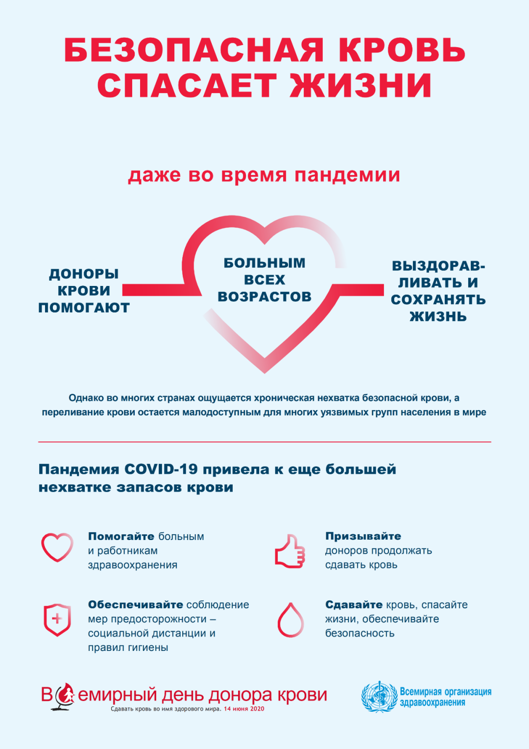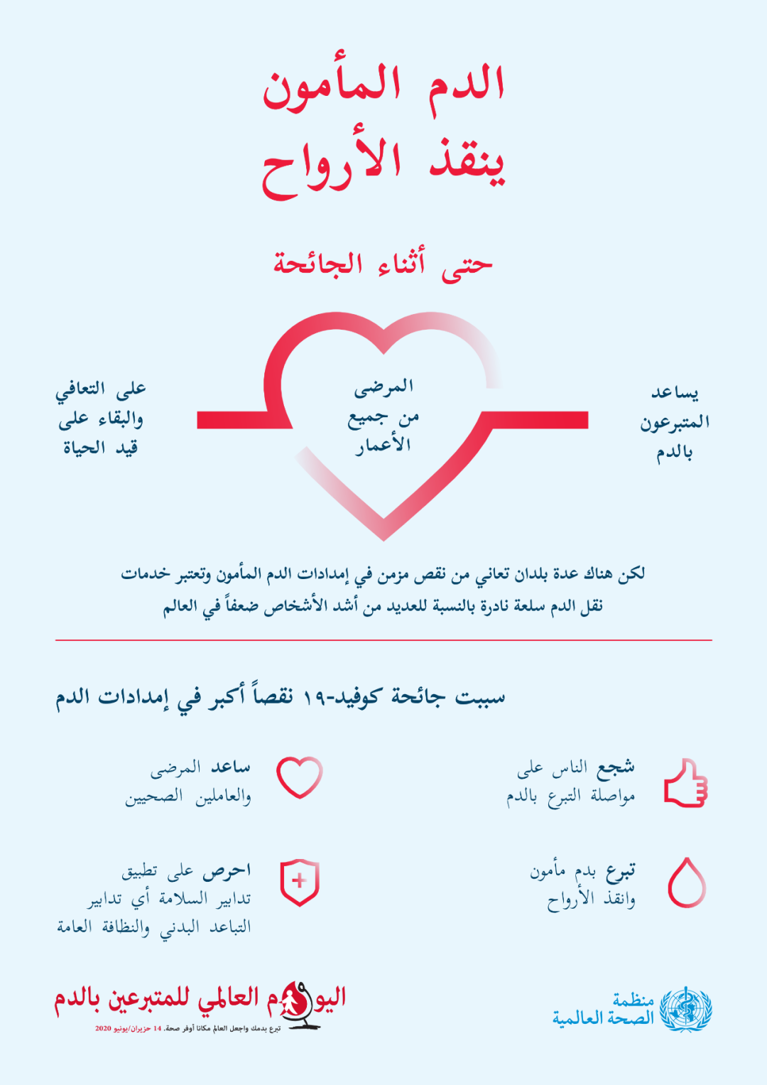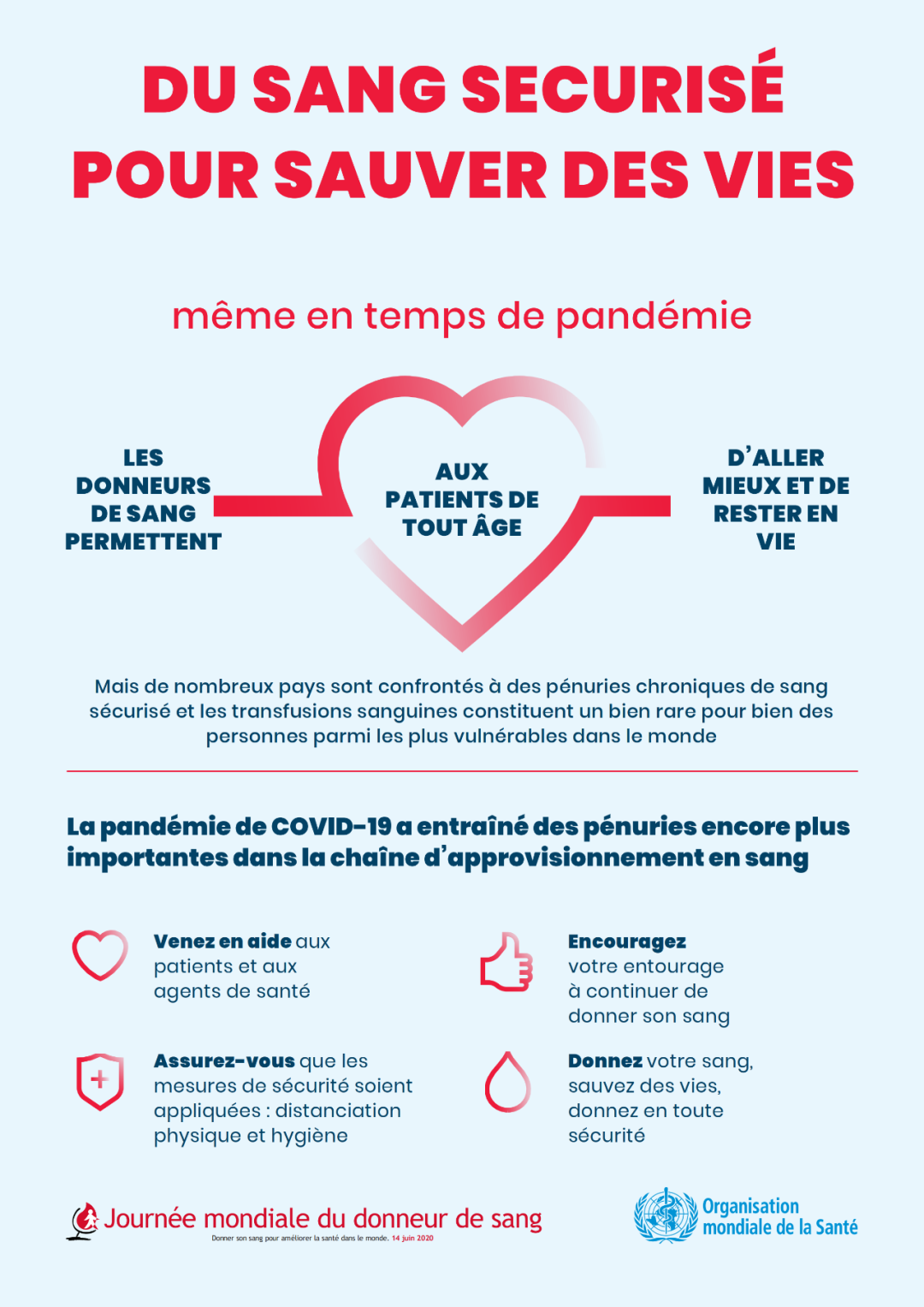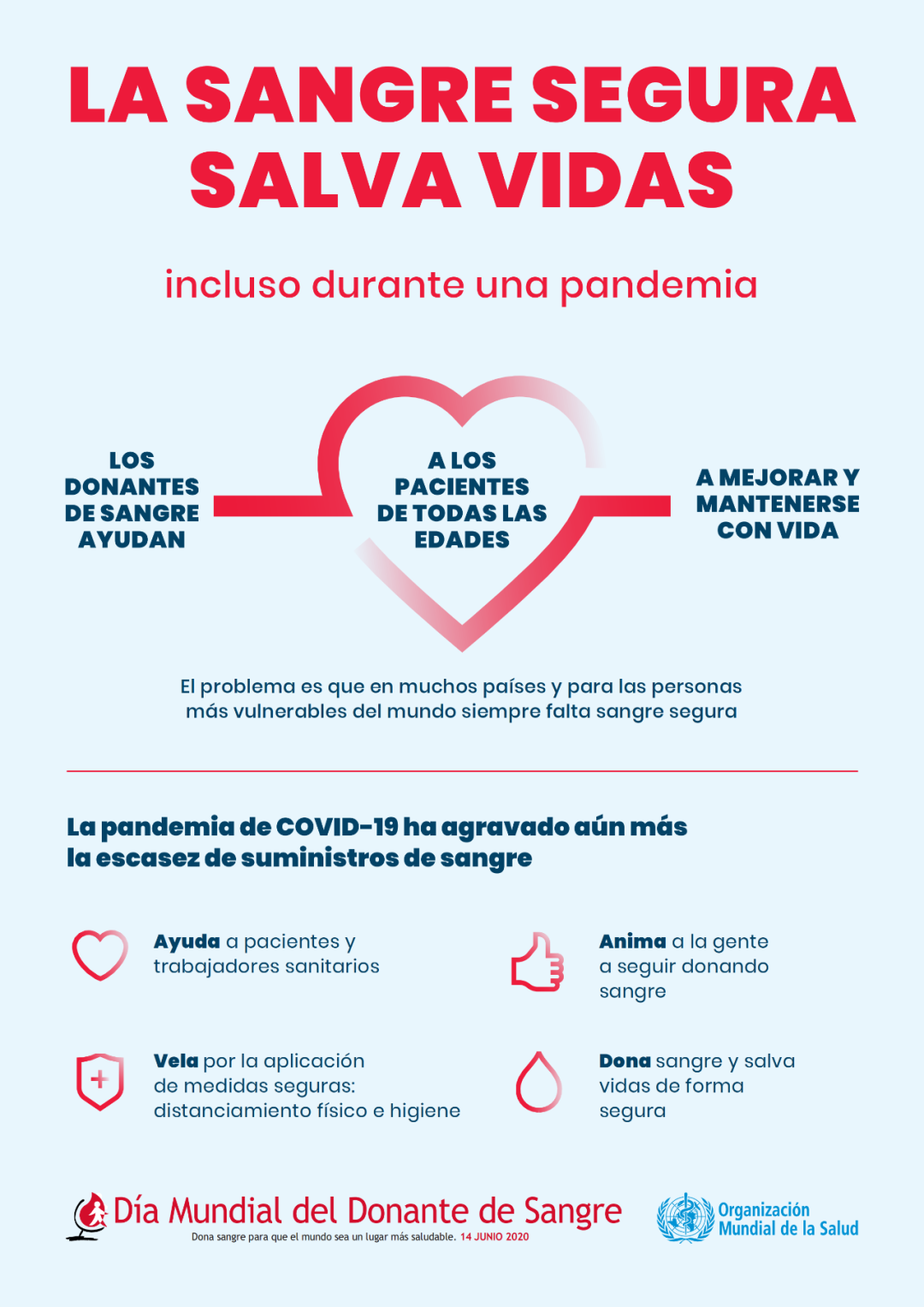 6月4日,世界卫生组织(WHO)发布了2020年世界献血者日(WBDD)海报和媒体宣传材料。材料以WHO的六种官方语言(中文、英语、法语、俄语、西班牙语和阿拉伯语)发布。