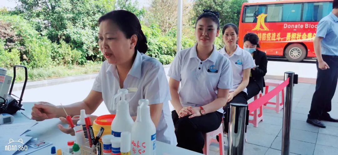 大家有序通过各项检查,排队献血,殷红的热血流向血袋,一份份爱心搭成温馨的彩虹,