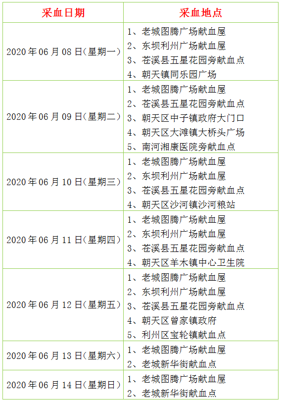 捐血指引(6月8日—6月14日)