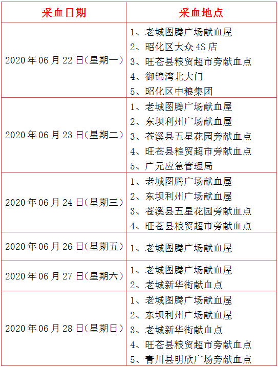 捐血指引(6月22日—6月28日)