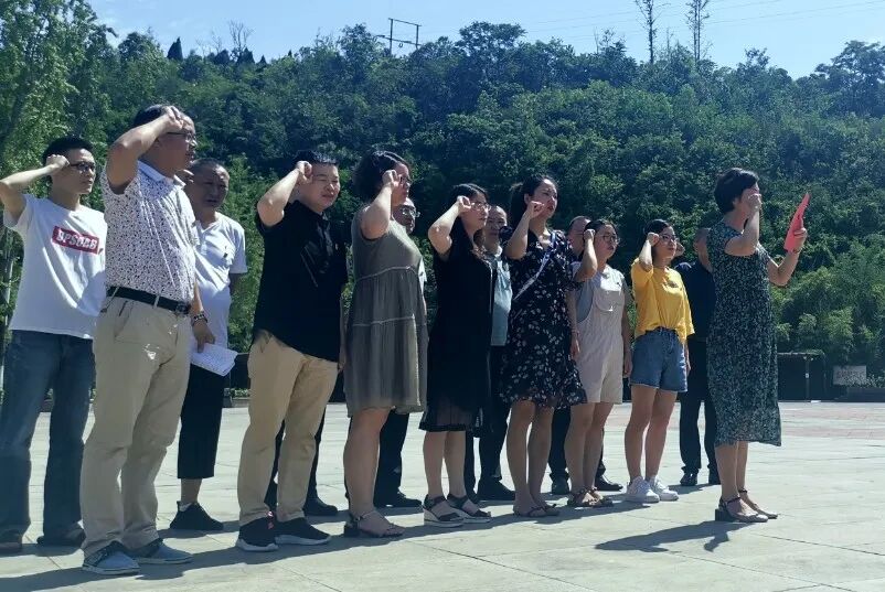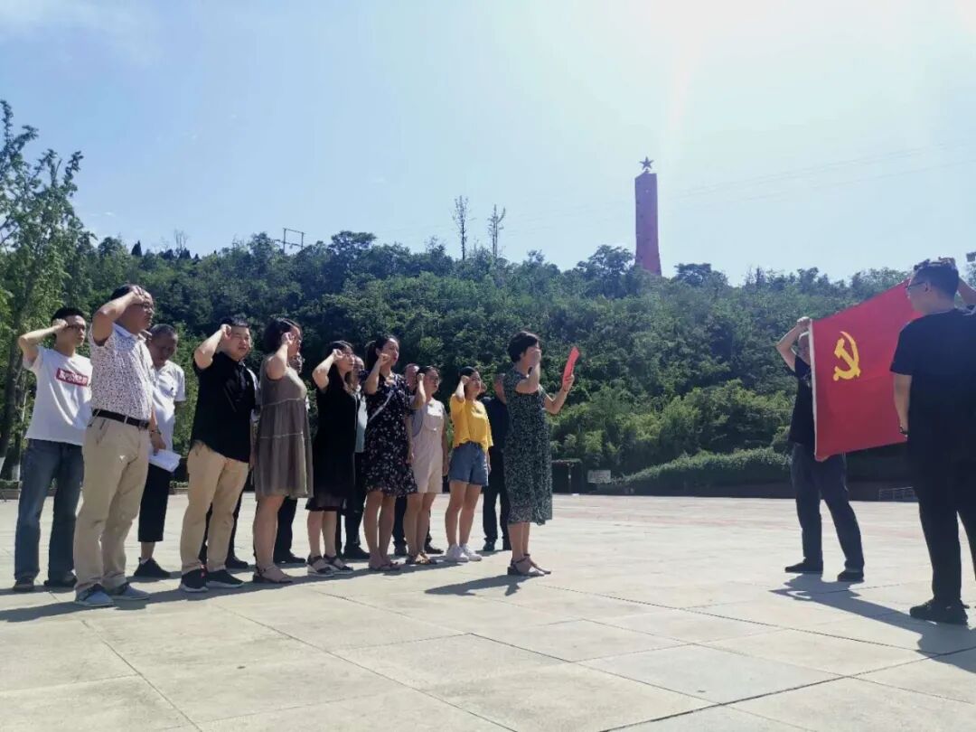 随后全体党员来到革命教育基地——红星公园,在鲜红的党旗下,在党支部书记翁彬同志的带领下,举起紧握的右拳,庄严的举行了“重温入党誓词”活动。