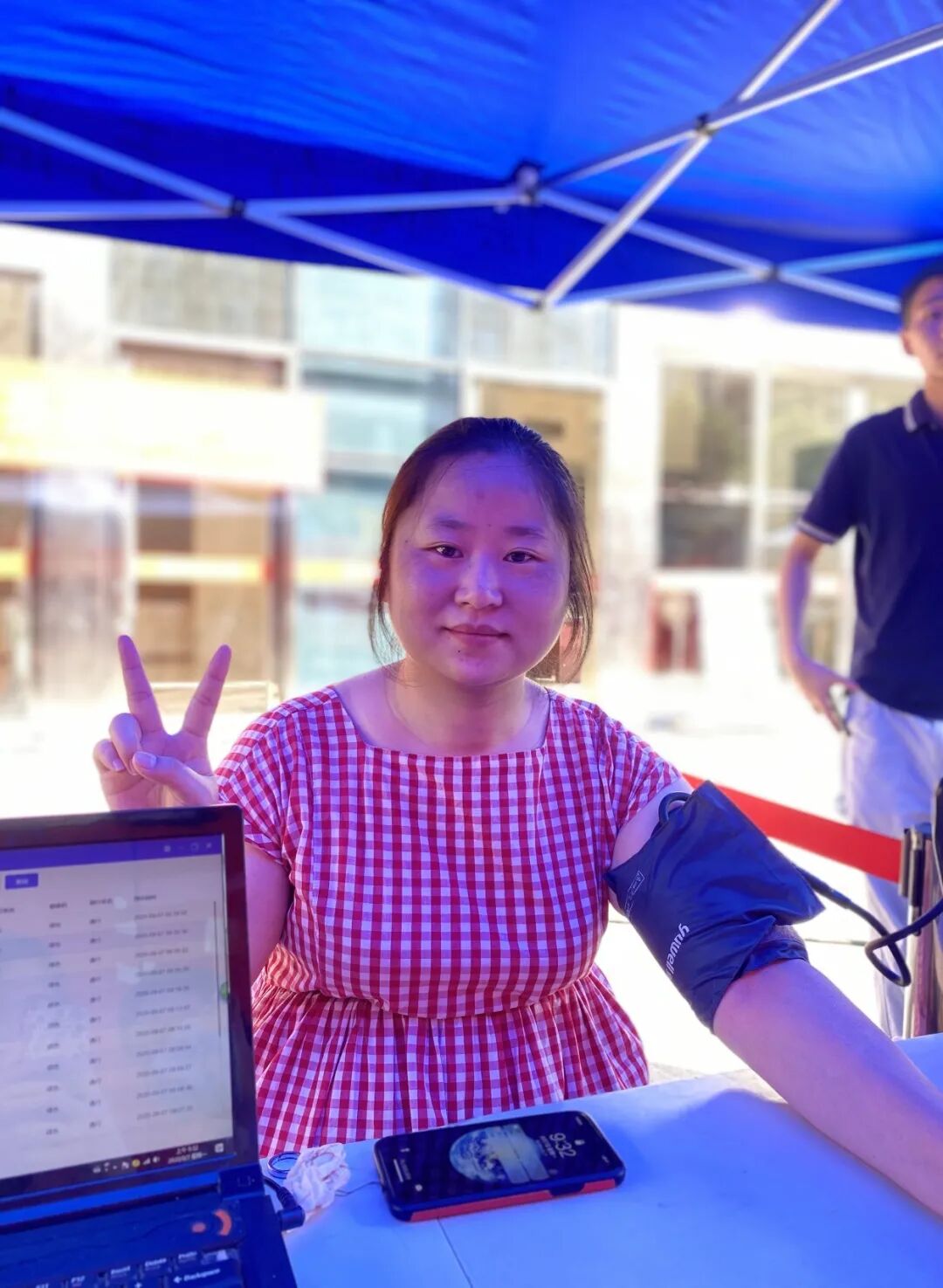 早上8:30,参与无偿献血的人员来到采血车、献血屋前,每人自觉排好队。测体温、手消毒、填表、健康征询、体检、快速检测等。工作人员在旁边协助献血者填表、体检、测量血压,并耐心地讲解献血流程和注意事项。符合献血要求,他们逐个走上采血车、献血屋挽袖捐献血液。