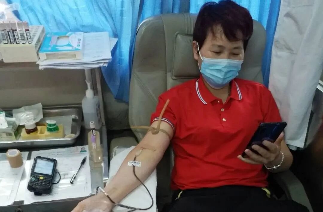 市中心血站的流动采血车如约准时来到新华保险公司,活动现场,前来献血的志愿者们有序的排起了长队,在工作人员的引导下,依次进行登记、扫健康码、血样检测、量血压等一系列流程。检查合格的志愿者在血站工作人员的指引下,挽起衣袖,伸出胳膊,献出爱心。