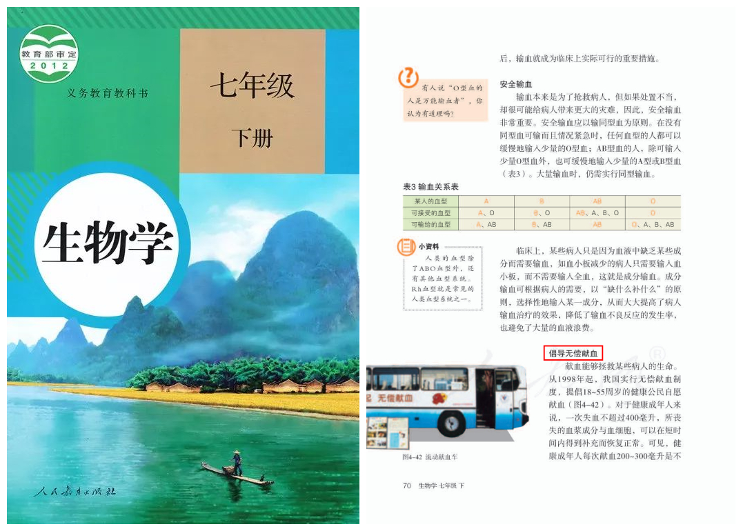 无偿献血被写进了课本!
