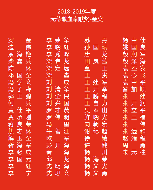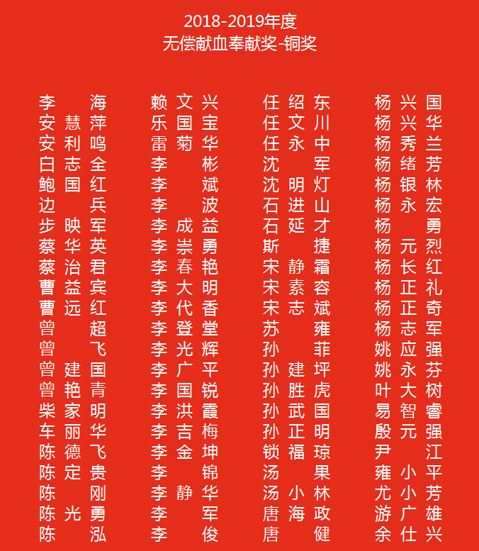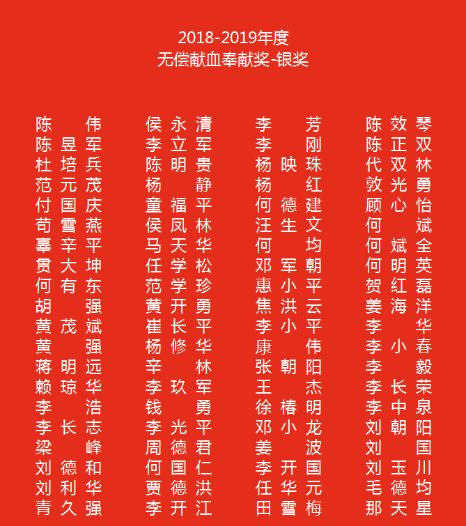 荣誉的获得离不开广大无偿献血者和关心无偿献血事业人士的支持与参与,在此向社会各界爱心人士表示衷心的感谢!向获得表彰的献血者、志愿者、爱心人士表示热烈的祝贺!感谢你们捐献热血、热心公益,为健康广元贡献力量,现将全国无偿献血获奖名单张榜公布如下:
