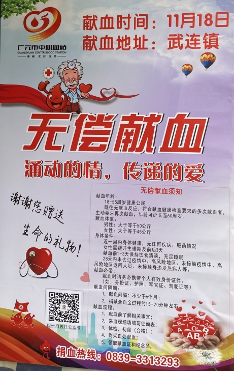 活动前期,站献血办提前与各乡镇政府、卫生院接洽此次团体无偿献血活动的时间和宣传工作、协调采血车停放点、张贴各乡镇献血宣传海报。