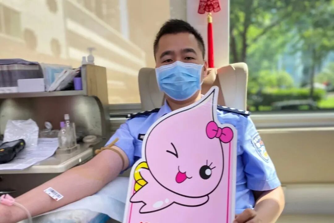 “作为一名警察也是名党员,我以无偿献血的方式为建党百年献礼。”