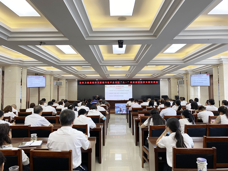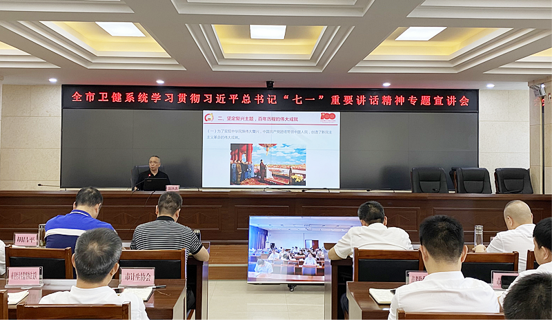 为深入学习贯彻习近平总书记在庆祝中国共产党成立100周年大会上的重要讲话精神,推动“七一”重要讲话精神走进基层、深入人心,全面助推卫生健康事业高质量发展,7月26日下午,市卫健委举办全市卫健系统学习贯彻习近平总书记“七一”重要讲话精神专题宣讲会,会议邀请市委党校副校长蒲泽洪同志作题为“坚定复兴主题 掌握历史主动”的专题宣讲。