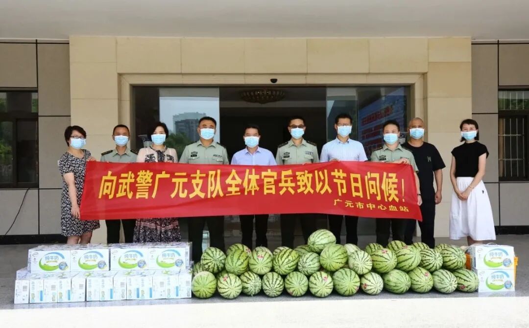 7月30日,市中心血站支部书记、站长王优等一行前往武警广元支队,在“八一”建军节来临之际,为全体武警官兵送去“夏日清凉”慰问物资,以此表示最诚挚的节日问候!感谢武警广元支队长期以来对我市无偿献血工作的大力支持。