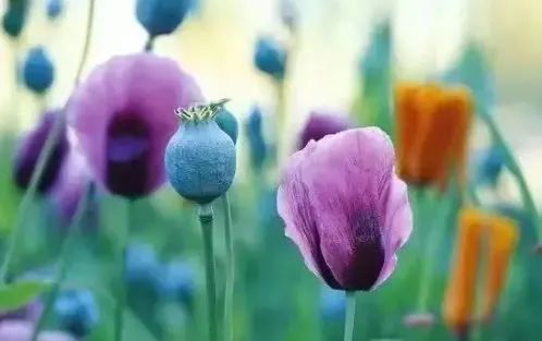 罂粟是一年生草本植物,叶片碧绿,花朵五彩缤纷,茎株亭亭玉立,蒴果高高在上,夏季开花,花大,单生枝顶。花瓣4片,红色、紫色或白色。果实球形或椭圆形,种子小而多。