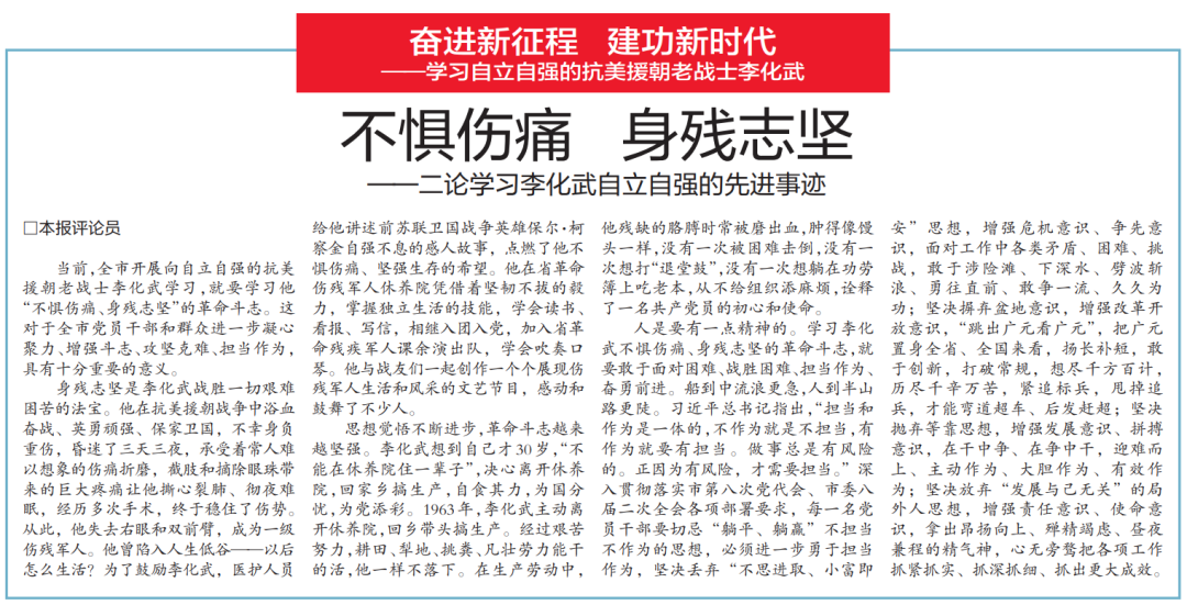 《广元日报》评论员文章:不惧伤痛 身残志坚——二论学习李化武自立自强的先进事迹