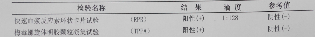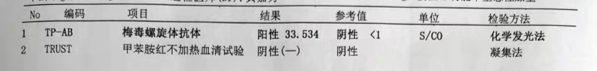 他拿到的结果里有一个跟梅毒有关的结果是阳性: