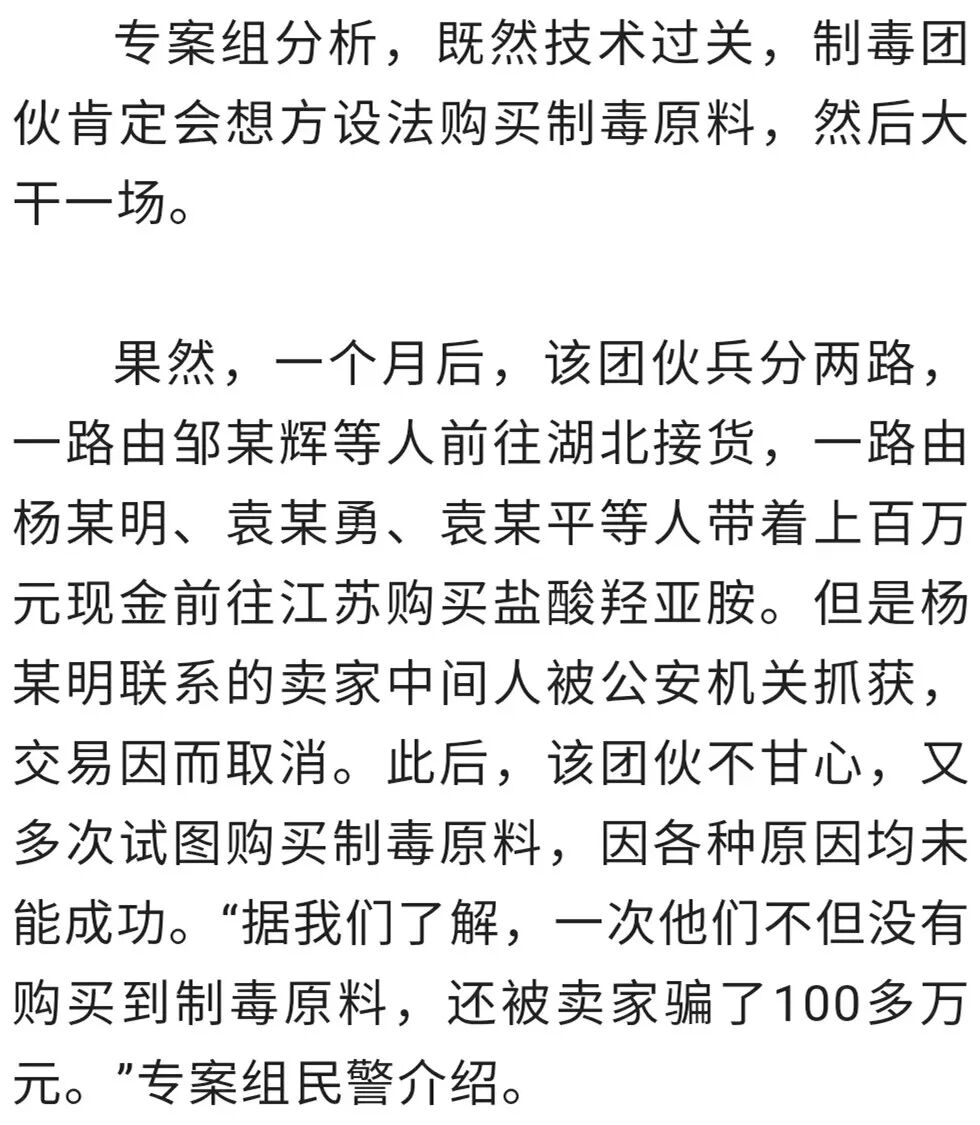 然而,正当专案组准备围捕时,发现该团伙3辆小车连夜向宜春市万载县方向移动。专案组分析认为,不排除转移到万载制毒的可能。