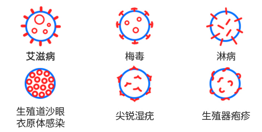 四免分别为免费抗病毒治疗(ART)、免费自愿咨询检测(VCT)、免费母婴阻断(PMTCT)、艾滋病遗孤免费就学;⼀关怀为对艾滋病患者家庭实施关怀救助。除艾滋病外,目前我国重点防治的性病有梅毒、淋病、生殖道沙眼衣原体感染、尖锐湿疣和生殖器疱疹。