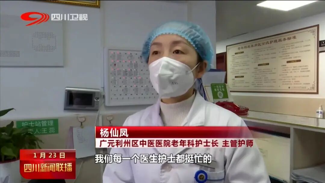 广元利州区中医医院老年科护士长、主管护师 杨仙凤:春节期间看病的病人特别多,有百分之七八十的都是呼吸道疾病。我们每一个医生护士都挺忙的,尤其是我们老年科,压力都很大。