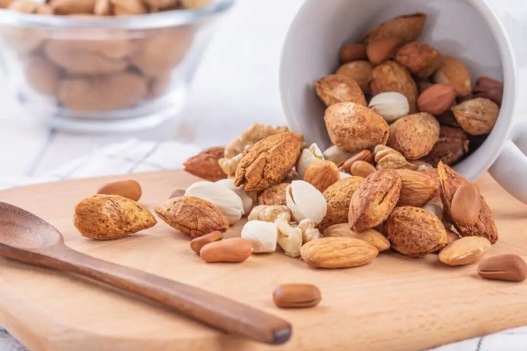 首先,亚麻酸、亚油酸等多不饱和脂肪酸是表皮角质层的重要成分,对皮肤屏障起关键作用。其次,它们也参与了头发生长所需激素的合成和激素水平的调节。如果身体缺乏必需脂肪酸,就会出现皮肤严重干燥和脱屑、头发干燥杂乱以及休止期脱发。必需脂肪酸的来源主要是植物油、大豆和坚果等,α-亚麻酸含量丰富的有亚麻籽油和紫苏油,含亚油酸丰富的有葵花籽油、大豆油等。另外需要注意的是,饮食中ω-6脂肪酸摄入过量可能增加炎症状态的风险,应保持ω-6和ω-3 比例的平衡,建议二者比例在4:1~6:1。