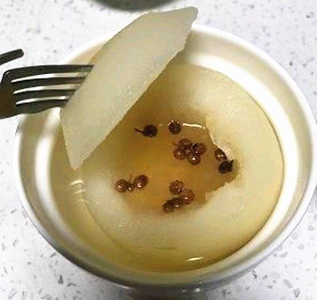 多适用于寒咳、痰稀色白等,将梨子洗净切块(不削皮),加入花椒7-8粒左右,水适量,大火熬煮,水开后关小火煮适宜时间,去掉花椒,即可饮用。
