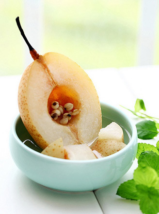 多适用于燥咳、咳痰不利、咽喉不爽等,将梨子洗净切块(不削皮),加入川贝3g左右,水适量,大火熬煮,水开后关小火煮15分钟左右,即可饮用。