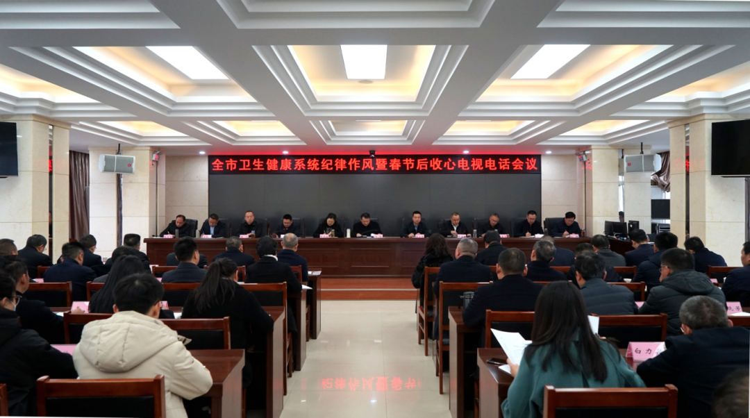 2月19日上午,广元市卫生健康委召开全市卫生健康系统纪律作风暨春节后收心电视电话会议,委党组书记、主任刘峰出席会议并讲话。会议以视频形式开到各县区和委直属单位。