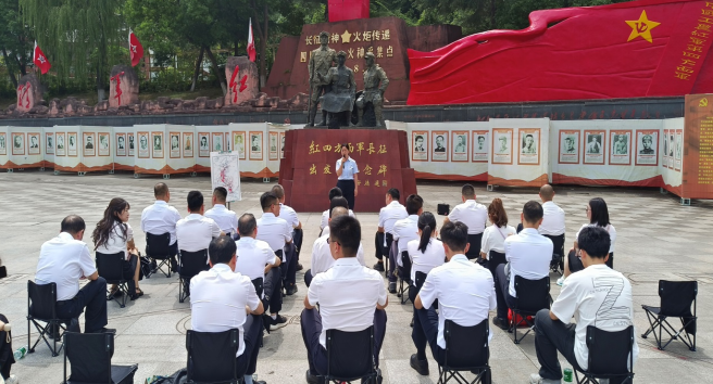 在红军渡廉政教育基地,全体党员干部在红四方面军长征出发地纪念碑前,向革命烈士敬献花篮、鞠躬致敬。跟随讲解员先后参观了诗词碑林、红军街、红军长征文化长廊、渡江指挥所、红四方面军长征出发地纪念馆、红军石刻标语牌廊,瞻仰了功勋馆、将帅广场、红军渡雕像等,并开展微党课教学和重温入党誓词等活动,激励党员坚定信念,忠诚担当。