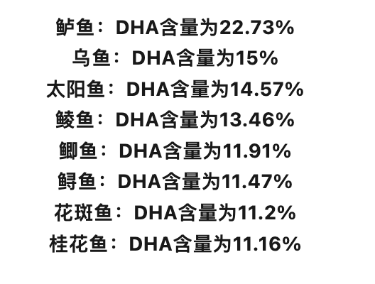 不过,有8种淡水鱼的DHA含量也不错,可以安排。