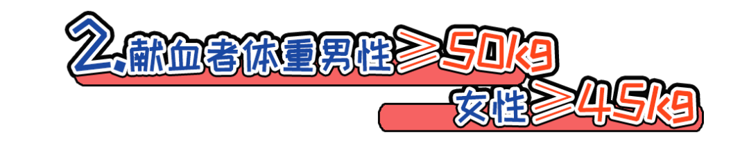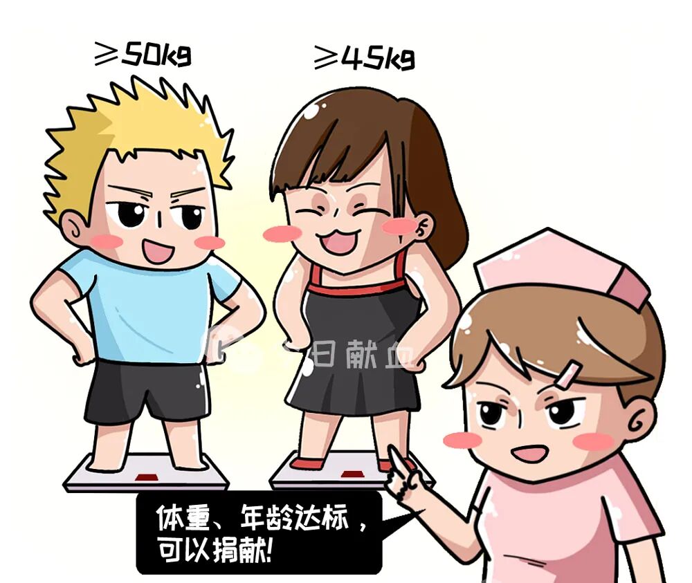 根据《献血者健康检查要求》,捐献全血男性体重需≥50公斤,女性体重≥45公斤;捐献血小板,男女体重均要≥50kg,地方有献血条例的,以当地献血条例为准。