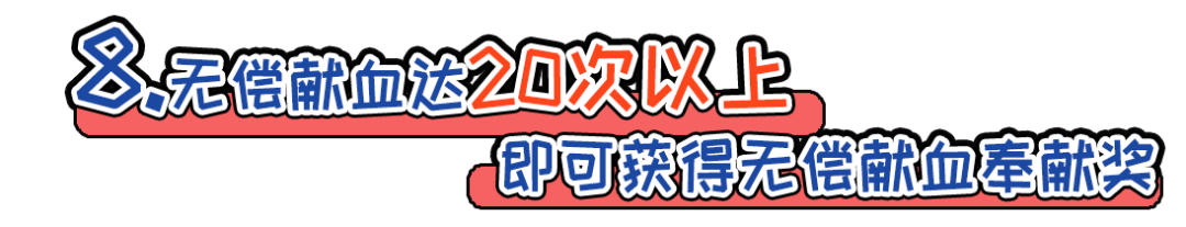 无偿献血奉献奖,用以奖励多次自愿无偿献血者。其奖项和获奖标准为: