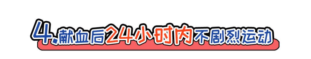 剧烈运动及通宵娱乐建议在24小时后,献血手臂在24小时之内不提重物,以免皮下出血。
