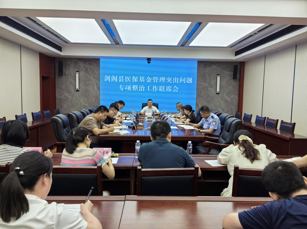 2025年7月1日上午,剑阁县召开医保基金突出问题专项整治工作专班工作推进暨联席会议,县委常委、副县长刘建安出席并讲话,县专班各成员单位分管领导、经办股室负责人,县医保局班子成员、中层干部参加会议。各成员单位分别就整治工作开展情况作了汇报。