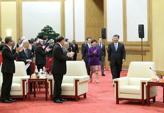 11月12日,国家主席习近平在北京人民大会堂会见香港澳门各界庆祝国家改革开放40周年访问团。新华社记者 王晔 摄