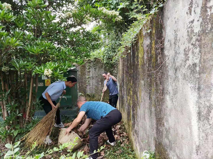 据悉,此次活动采取“支部引领、全员参与、划分责任田”的方式,在办公场所开展人居环境整治攻坚行动,彻底清除房前屋后、绿化带的卫生死角。共清扫办公楼1栋、原气象局职工住宿楼2栋,整治废弃桌椅板凳1处,修剪绿化栅栏及草坪400余平方米,修护绿化树2棵,以及院内绿化带杂草。