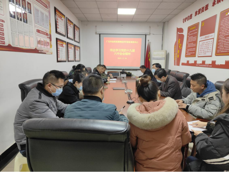11月19日,经开区自然资源事务中心召开干部职工大会传达学习十九届六中全会精神。