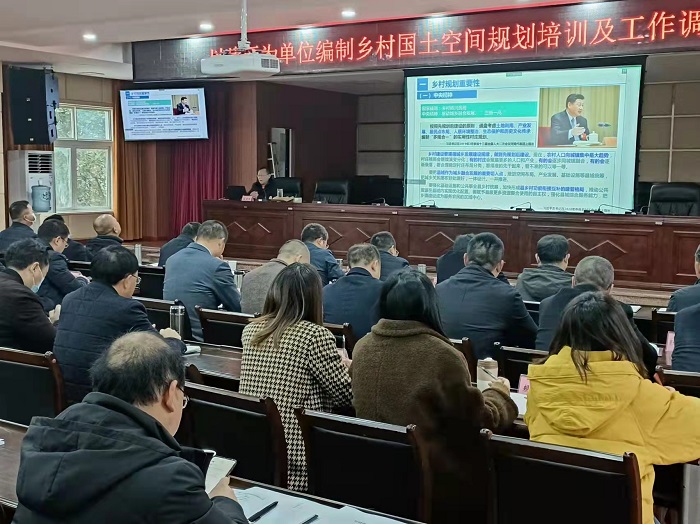 刘文武局长首先感谢省厅对我市工作的支持,同时指出乡村国土空间规划编制工作是省委省政府、市委市政府深入推进乡级行政区划和村级建制调整两项改革“后半篇”文章的重要举措,也是做好两项改革“后半篇”文章的基础性工作,既是一项艰巨的政治任务,又是一项系统的技术工作,开展业务培训吃透政策精神、掌握技术要求对高质量编制乡村国土空间规划十分重要。要求各级各部门珍惜机会、认真学、深入思考,科学规范有序推进乡村国土空间规划编制工作。随后,高黄根院长围绕乡村国土空间规划为什么编和怎么编两大板块,以科学的理论、丰富的素材、典型的案例进行了系统、深刻的剖析讲解。通过培训,进一步提高了我市各级各部门组织开展乡村国土空间规划编制工作的能力和水平,为高质量编制乡村国土空间规划打下了坚实的基础。培训结束后,我市结合省自然资源厅、省级工作专班和市级工作方案有关要求,听取了县(区)关于乡村国土空间规划编制工作推进情况的汇报,并针对各县(区)的情况逐一进行了工作调度。