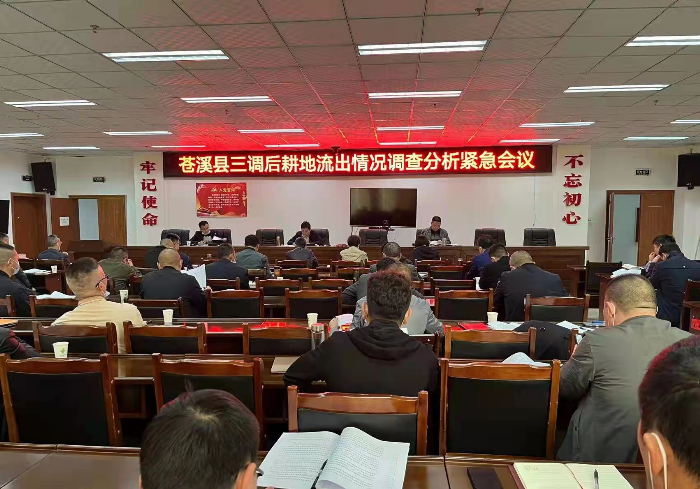 4月7日,苍溪县“三调”后耕地流出情况调查分析紧急会议在县自然资源局三楼会议室召开,局相关股室人员和各自然资源所全体干部参会。