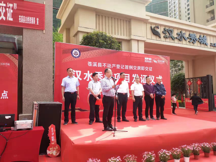 4月29日,苍溪县自然资源局在汉水秀城楼盘举行了“交房即交证”首发仪式,县人大常委会副主任徐进波,县自然资源局党组书记、局长王琦以及县税务局、县行政审批局、县住房和城乡建设局、县综合行政执法局等部门负责同志参加了首发仪式。