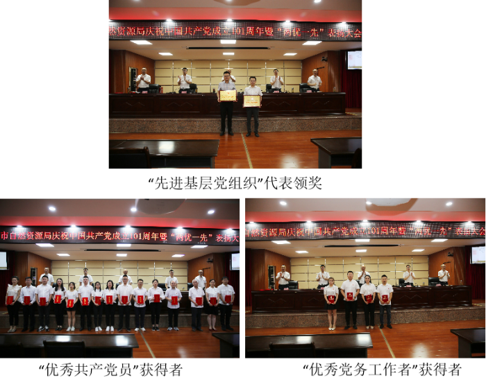 会议在齐唱《中华人民共和国国歌》中拉开序幕,刘文武同志带领新发展党员面对党旗庄严宣誓,表达了为共产主义奋斗终身的坚定决心。局党委委员、副局长苟云宣读了《中共广元市自然资源局委员会关于表扬市自然资源局优秀共产党员、优秀党务工作者、先进基层党组织的通报》,与会领导为受表扬的优秀共产党员、优秀党务工作者和先进基层党组织颁发了获奖证书。
