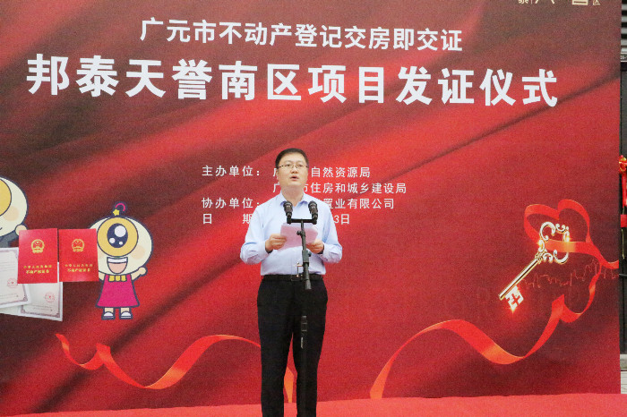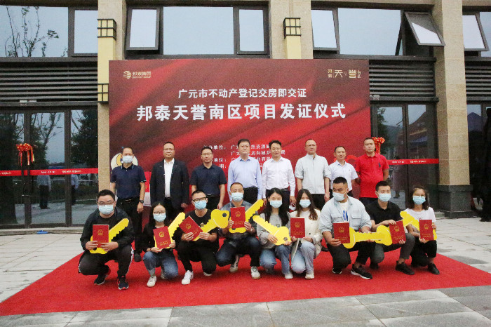 9月23日,广元市在邦泰天誉南区举行市本级第二批新建商品房“交房即交证”首证颁发仪式。“一手拿钥匙,一手拿不动产权证”的服务新模式,让1200户业主交房与领证“无缝衔接”,“住权”与“产权”同步办理。