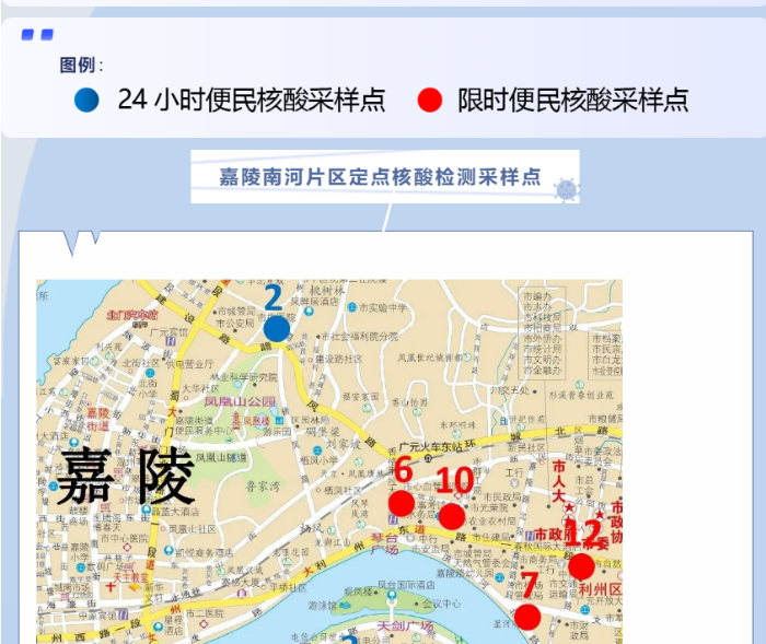 在坚定坚决打好疫情防控歼灭战的同时,为做好社会临时管控结束后的疫情防控工作,持续筑牢常态化防控严密防线,有效提升核酸采样能力,满足群众就近开展核酸检测的需求,市国土空间规划中心根据公布的市城区核酸采样点设置情况,制作了“市城区便民核酸采样点分布示意图”,并公布在“广元规划”公众号上,以方便群众快速查询身边最近的核酸采样点,就近开展核酸检测。