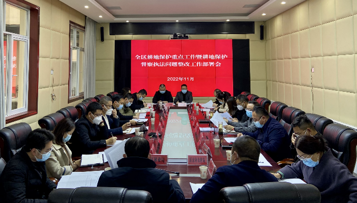11月29日,朝天区召开耕地保护重点工作暨耕地保护督察执法问题整改工作部署会,区委常委、区委政法委书记、区总工会主席仲满成,区人民政府副区长梁皓参加会议。