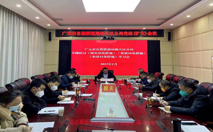 1月3日,广元市自然资源局朝天区分局召开党组(扩大)会议,专题学习《关于进一步提升城市规划建设管理品质的20条措施》、《关于进一步加强集镇规划建设管理的10条措施》、《关于进一步规范农村住房建设管理的15条措施》。