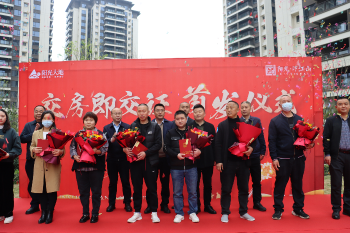 在经开区阳光·印江山交房即交证零距离首发仪式上,八名新房业主领到了属于自己的不动产权证,成为阳光·印江山项目第一批享受到交房即交证惠民政策的业主。