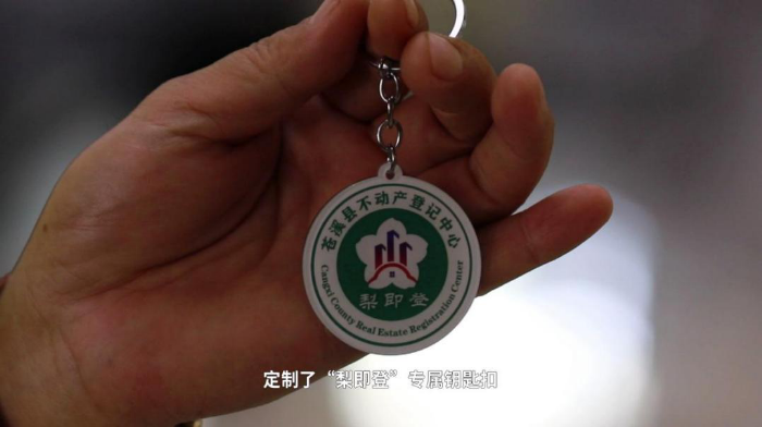 小小钥匙扣温暖人心。为增强群众的获得感和幸福感,苍溪县不动产登记中心定制了专属纪念版钥匙扣,新购商品房的权利人在领取不动产权证书时均获赠一枚专属钥匙扣作为纪念,挂有“梨即登”的圆形标识,既寓意着家庭团团圆圆、美美满满又体现苍溪县不动产登记中心高效为民的“靓丽名片”,既提升了群众满意度又进行了品牌宣传,实用又美观。