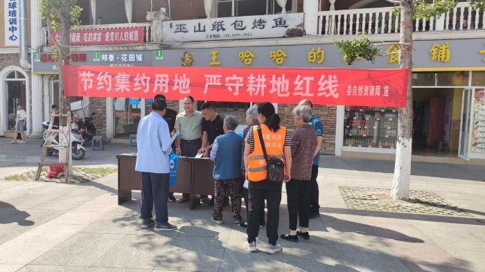 为宣传我国土地资源国情国策、耕地保护制度和节约集约用地制度,切实加强自然资源的合理规划和保护利用,营造浓厚的节约集约用地和依法保护耕地工作氛围,2023年6月25日,青川县自然资源局开展了以“节约集约用地 严守耕地红线”为主题的第33个全国土地日宣传活动。