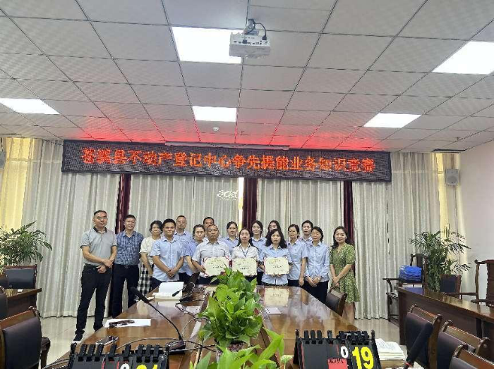 在庆祝中国共产党成立102周年之际,6月26日下午,苍溪县不动产登记中心支部坚持以赛促学、以赛促建、以赛促创,举办庆”七一“不动产登记业务知识竞赛,锻造不动产登记队伍的综合素质和业务能力。局党组成员、副局长曾倩,县不动产登记中心杨勇出席活动。