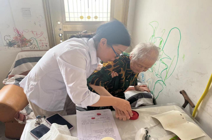 中心工作人员在得知这个消息后,当即决定为徐女士提供上门服务,到老太太的家里为其办理登记。