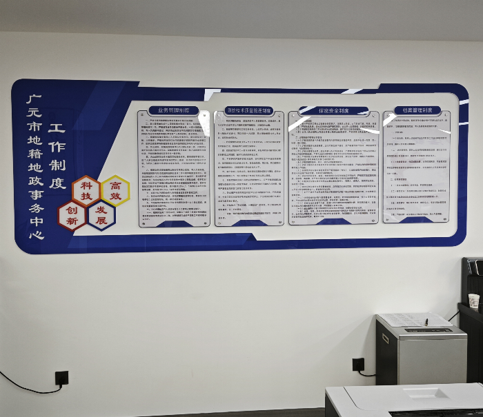 中心始终坚持以“标准化”为办公场所建设工作的出发点和落脚点,聚焦功能复合齐全、资源高效利用、功能用房配置齐全的目标,严格按照方案要求将工作制度上墙并设置了数据处理保密室、设备室等,切实提高办公用房使用率,并确保技术成果及数据保密安全工作落到实处。
