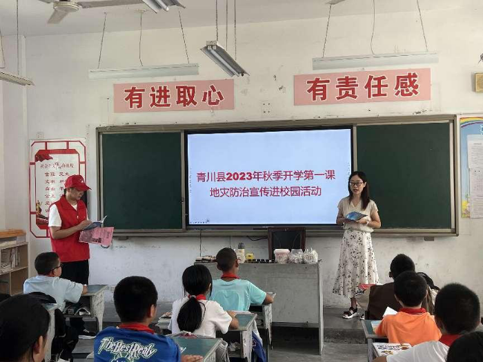 9月4日,青川县地质灾害应急指挥部按照省、市地灾指挥部的安排部署组织县自然资源局和县教育局在房石镇小学等30余所中小学校同步开展了秋季“开学第一课”地灾防治宣传进校园活动。