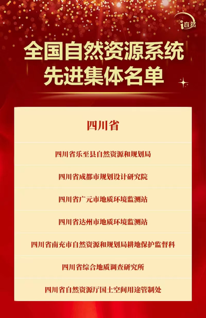 1月15日,人力资源和社会保障部自然资源部在北京召开全国自然资源系统先进集体和先进个人表彰大会,广元市地质环境监测站在表彰会上荣获全国自然资源系统先进集体称号。